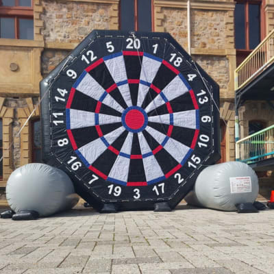 Take your event to the next level with our Giant Footy Darts Inflatable Hire in Broome, the ultimate combination of skill, competition, and oversized fun!